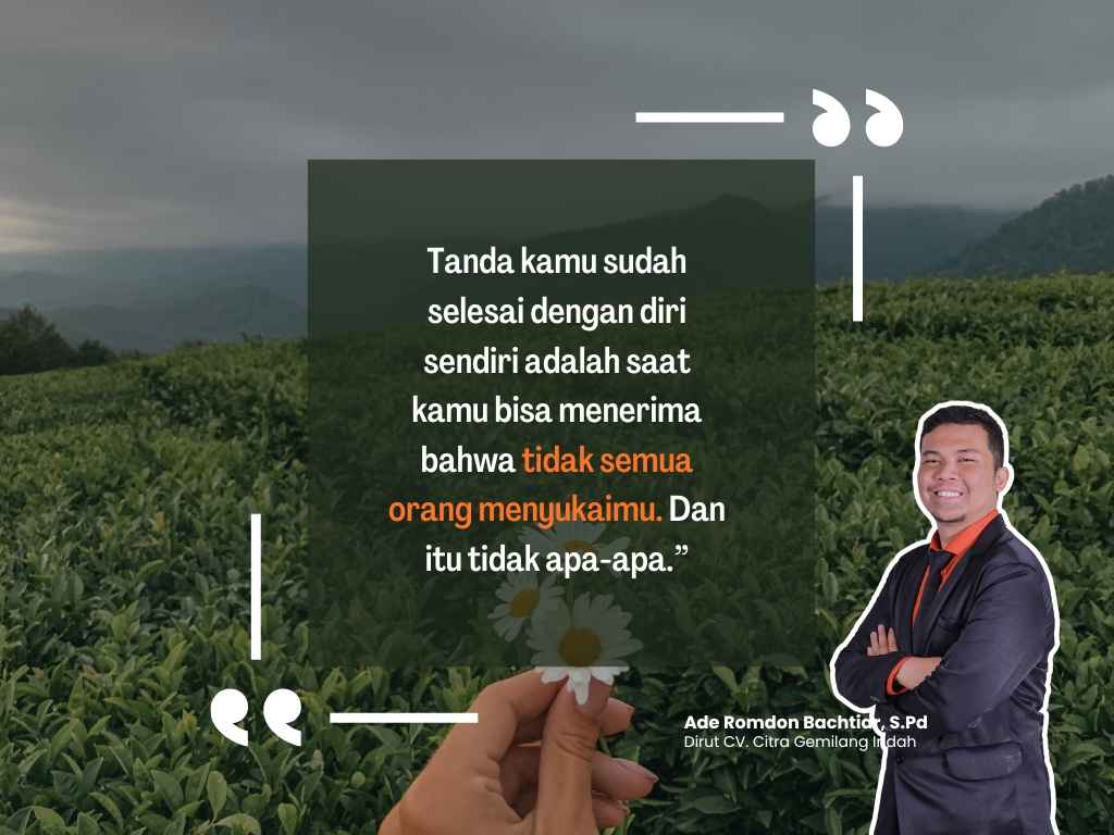 INFOLANGSEB.MY.ID – Sering kali, manusia terjebak dalam kegelisahan tentang bagaimana orang lain memandang dirinya. Apakah ada yang tidak menyukai kita? Mungkin iya. Apakah kita harus mencari tahu dan memaksa semua orang agar bisa menerima keberadaan kita? Tentu tidak. Sebab pada akhirnya, tanda bahwa kita sudah berdamai dengan diri sendiri adalah ketika kita bisa menerima kenyataan sederhana: tidak semua orang akan menyukai kita.
