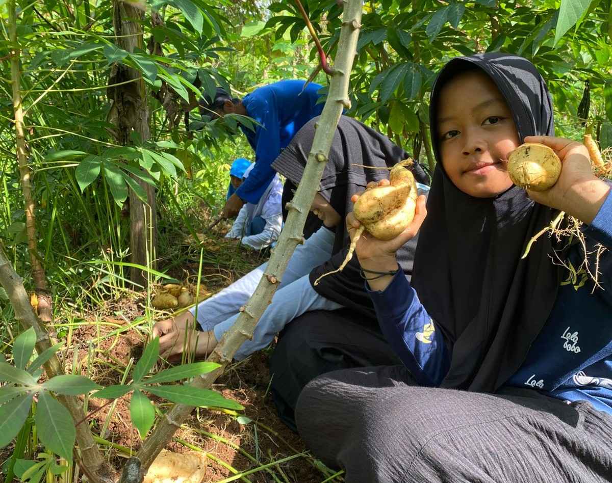 Dengan tangan-tangan kecil penuh semangat, para santri memanen ubi jalar yang telah mereka tanam beberapa bulan sebelumnya. Di bawah bimbingan para pembina dan relawan, kegiatan ini menjadi sarana belajar langsung tentang pentingnya kerja keras, kesabaran, dan rasa syukur atas hasil dari usaha yang dilakukan bersama.